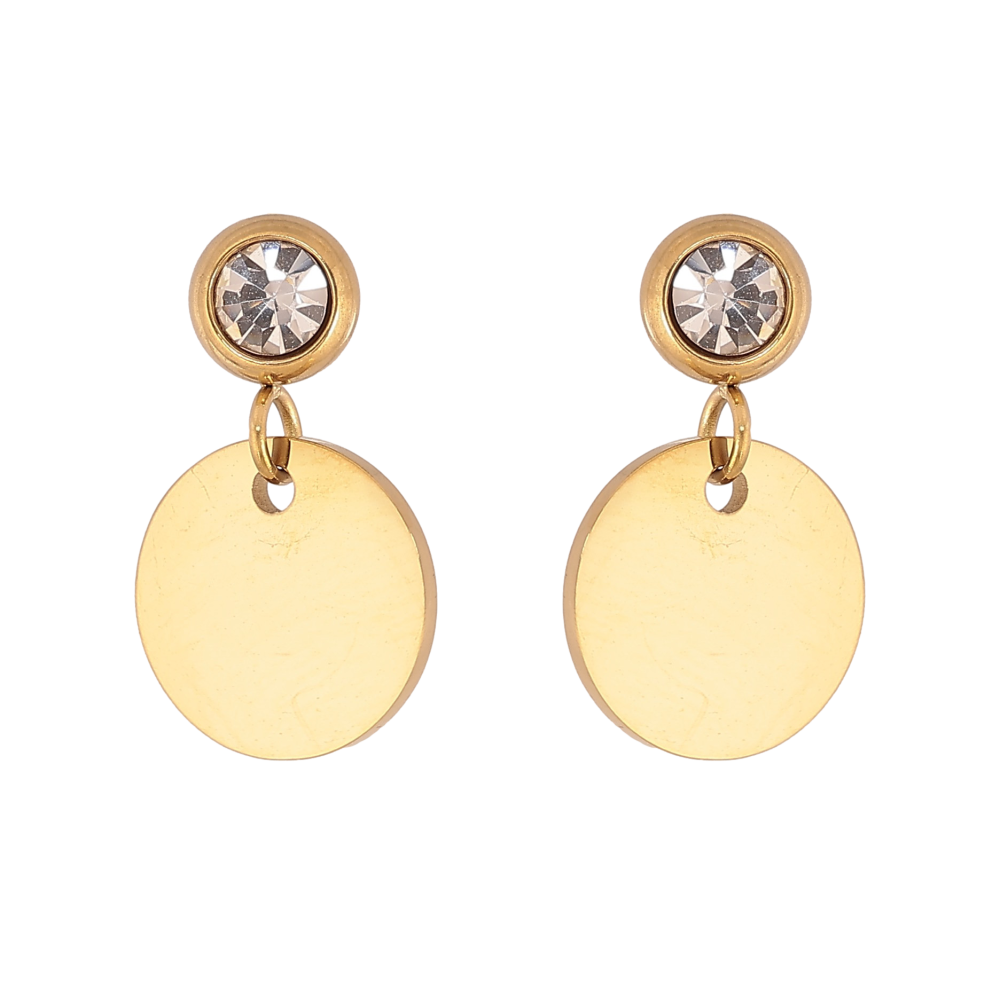 Сережки Xuping TTM Stainless Steel колір 14К пусети "Кристали з круглими підвісками"