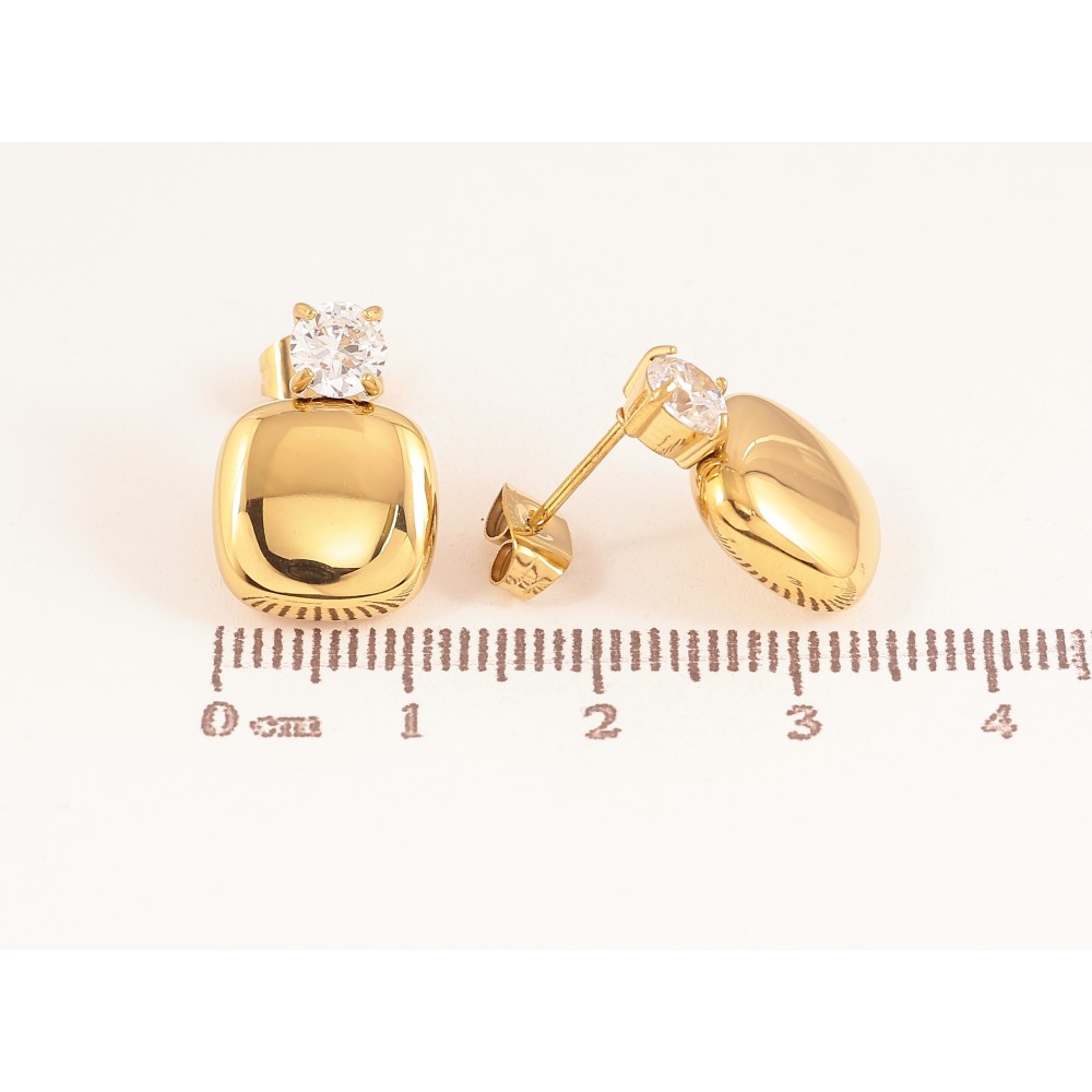 Сережки Xuping TTM Stainless Steel колір 14К пусети "Кристали з квадратами"