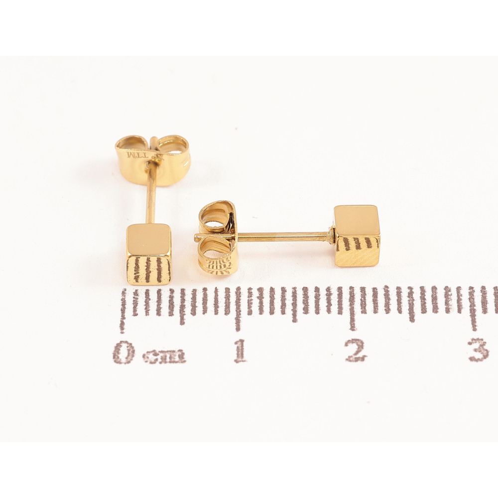 Сережки Xuping TTM Stainless Steel колір 14К пусети кубики 4х4мм