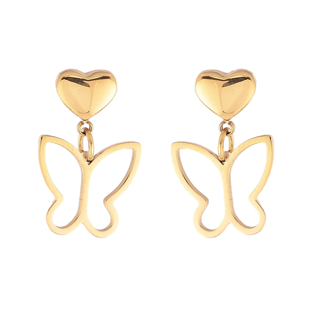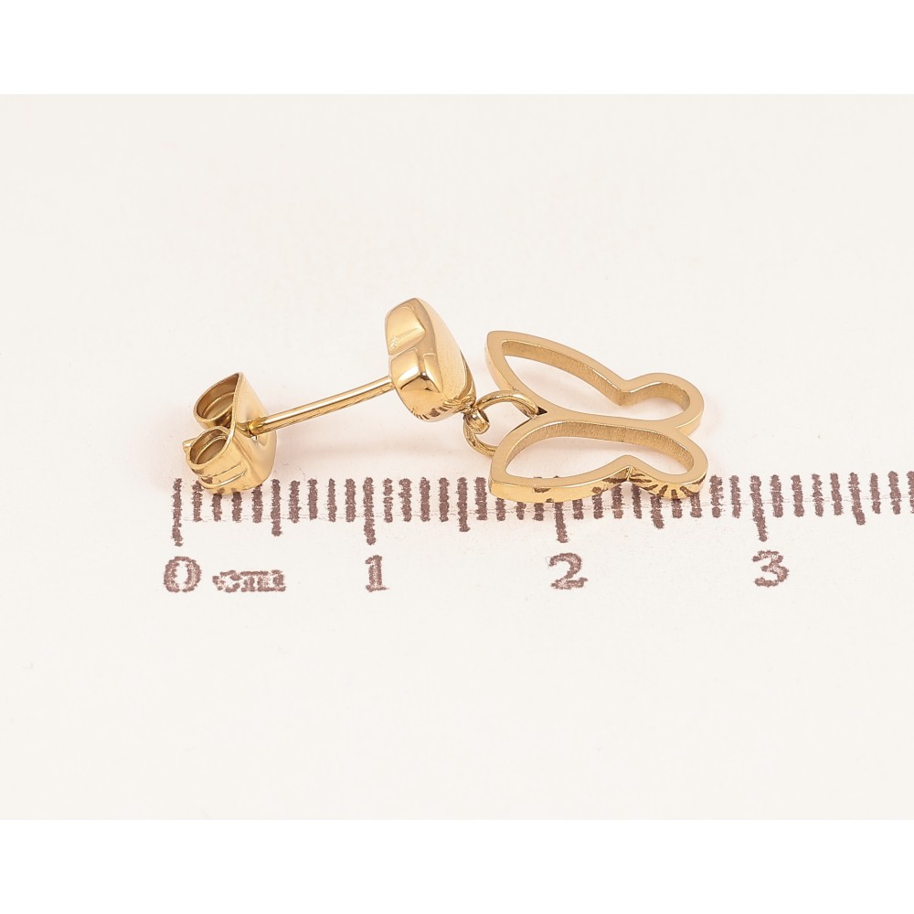 Сережки Xuping TTM Stainless Steel колір 14К пусети "Сердечки з метеликами"