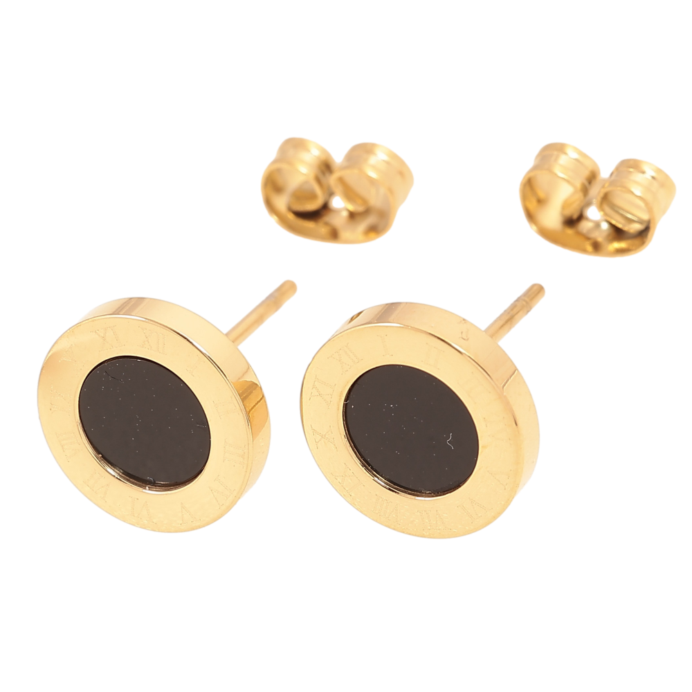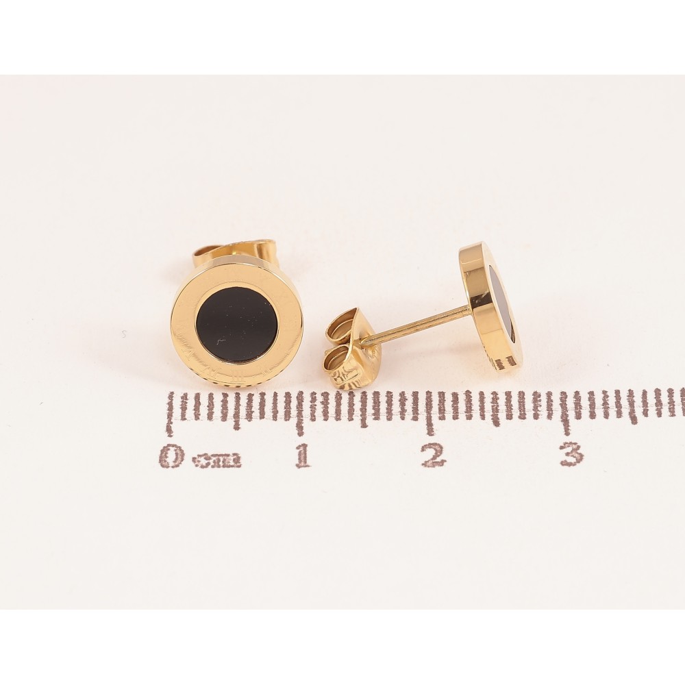 Сережки Xuping TTM Stainless Steel колір 14К пусети "Циферблат із чорними вставками" ø 10мм