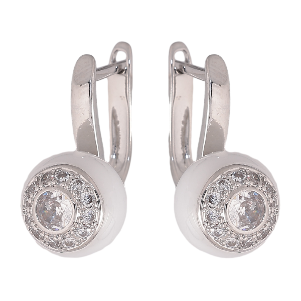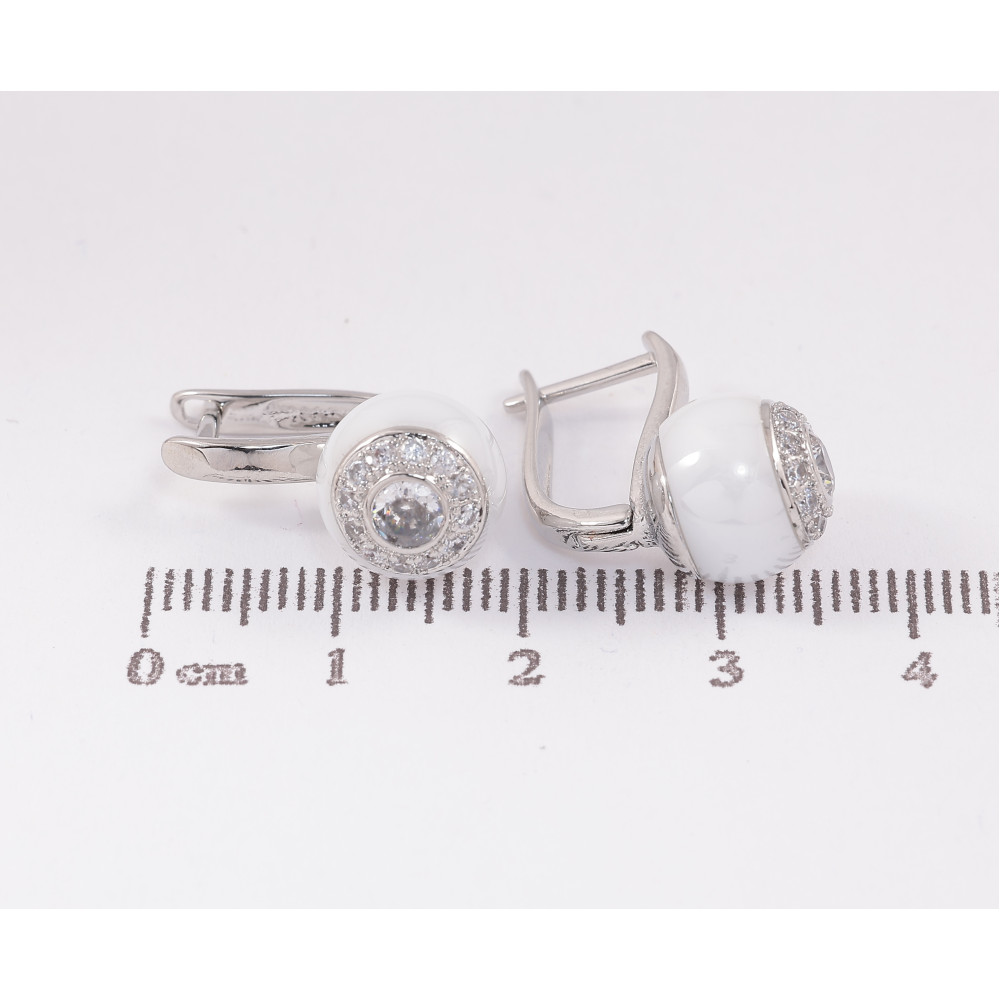 Сережки Xuping TTM Stainless Steel колір Родій англійський замок "Кульки з білої кераміки з кристалами"