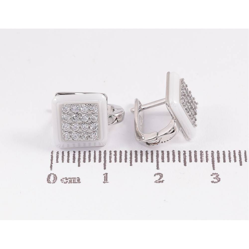Сережки Xuping TTM Stainless Steel колір Родій англійський замок "Квадрати з білою керамікою та кристалами"