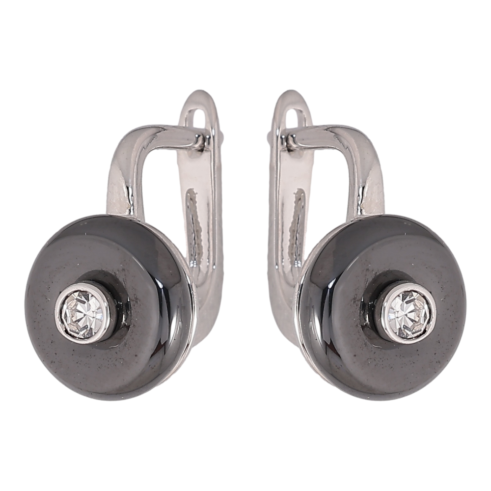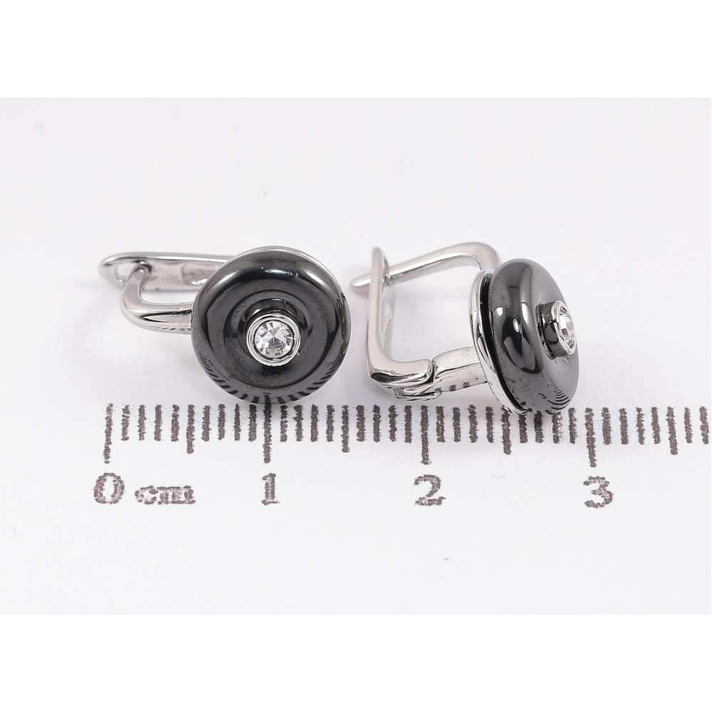 Сережки Xuping TTM Stainless Steel колір Родій англійський замок "Візерунок з чорної кераміки з кристалом"
