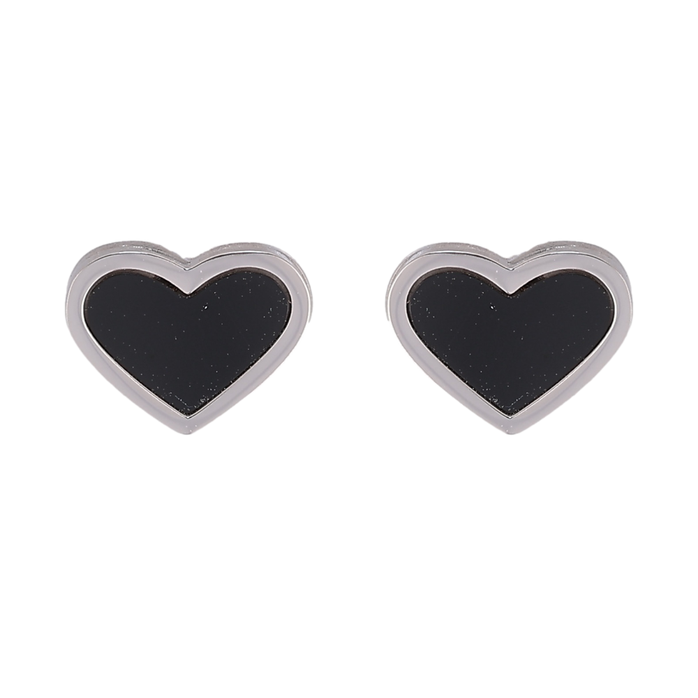 Сережки Xuping TTM Stainless Steel колір Родій пусети "Сердечки з чорними вставками"