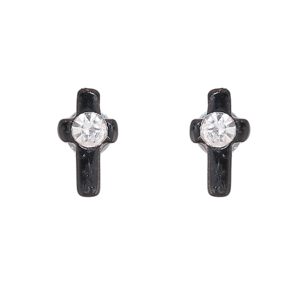 Сережки замок на магніті "Чорні хрестики з кристалом"